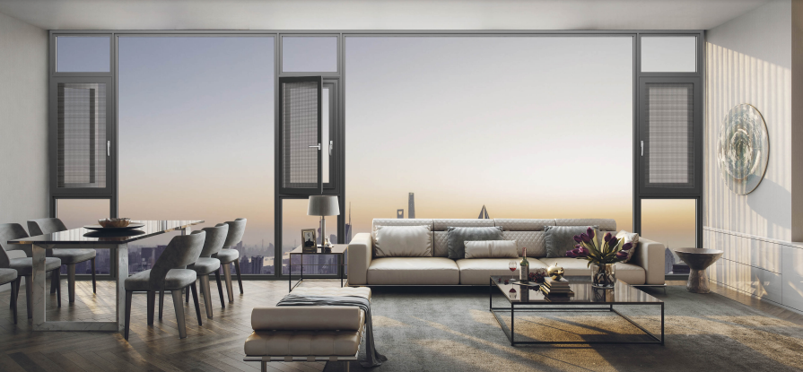 (1)断桥铝55系列是指断桥铝型材宽度为5厘米,壁厚为1.4MM,中空玻璃采用的是5+12A+5的玻璃,是三道密封胶条设计。